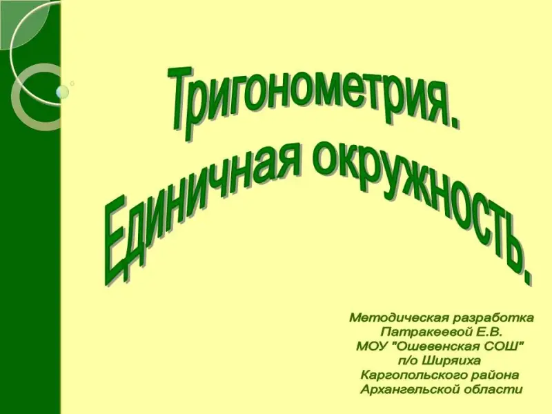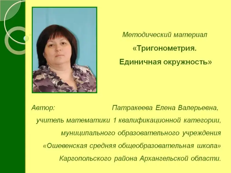 Данная презентация поможет педагогам познакомить учеников с единичной окружностью в 9 классе на уроках геометрии при изучении темы «Соотношения между сторонами и углами треугольника». И, конечно, она поможет расширить и углубить навык работы с единичной окружностью при решении тригонометрических заданий у учащихся старшего звена обучения на уроках алгебры.