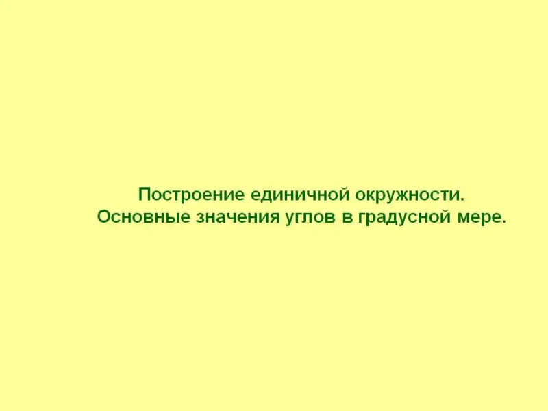 - Построение единичной окружности. Основные значения углов в градусной мере.