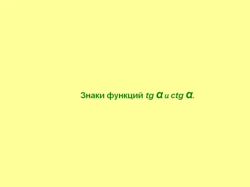 Слайды 9-11 поясняет знаки функций в координатных четвертях; определение промежутков знакопостоянства тригонометрических функций.