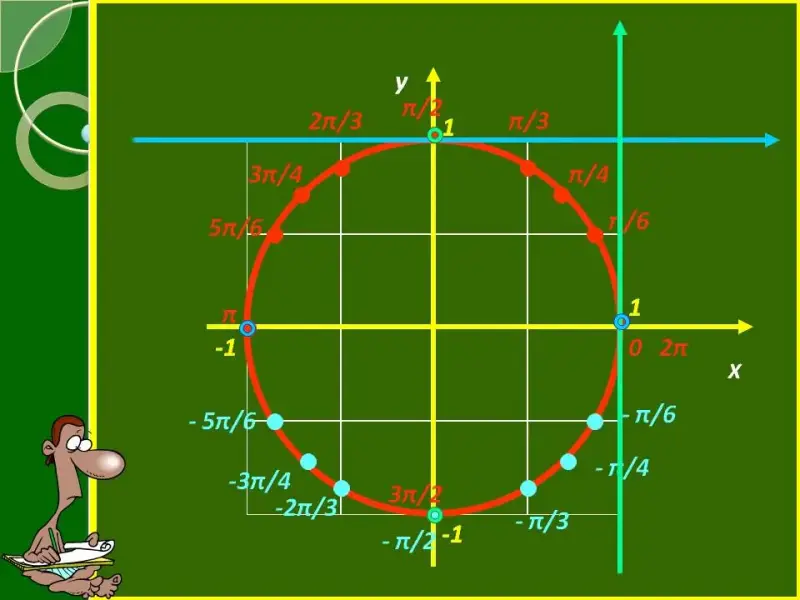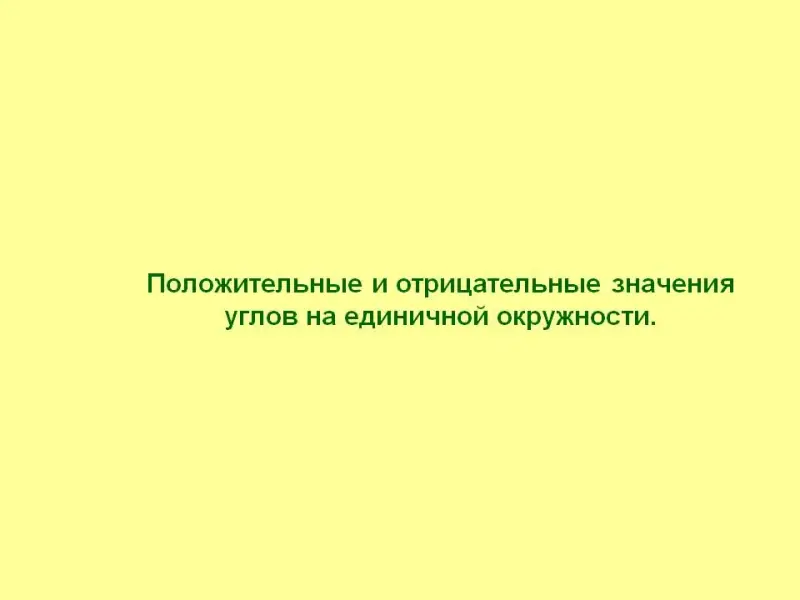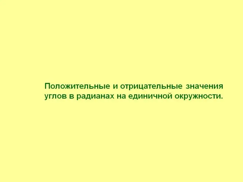 - Положительные и отрицательные значения углов в радианах на единичной окружности.