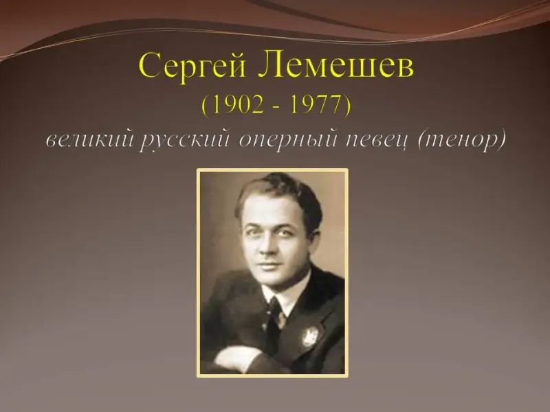 - Сергей Лемешев - великий русский оперный певец, режиссёр и педагог. В середине прошлого века не имел себе равных по мастерству и популярности. Он покорял слушателей неповторимым, задушевным тембром голоса. (Звучит запись голоса певца.)