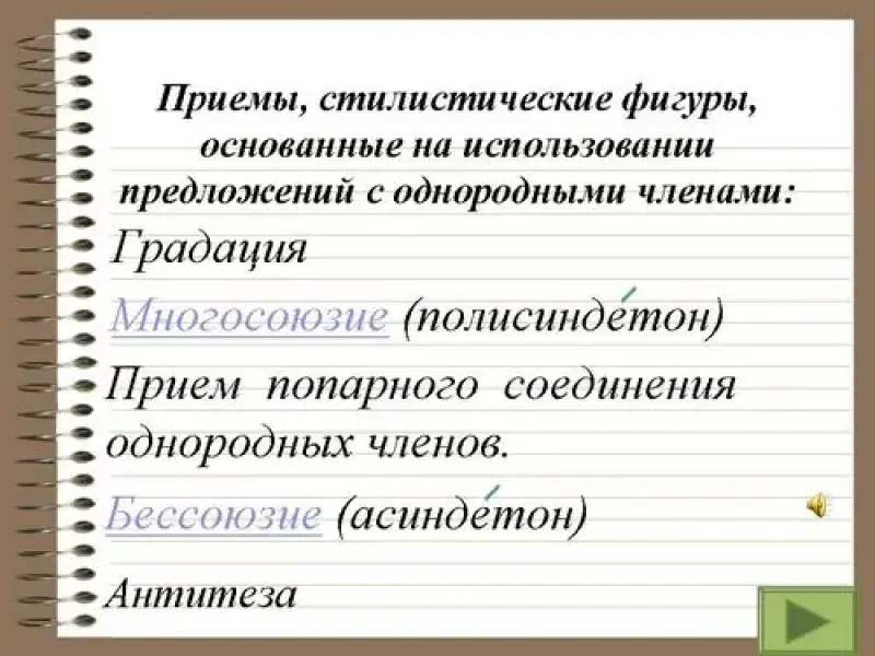 - Какие изобразительные средства языка, приемы, стилистические фигуры основаны на предложениях с однородными членами?
