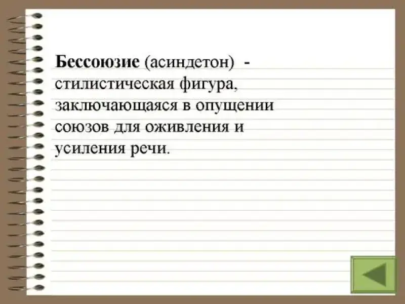 Вывод (запись в тетрадь по теории): (Cлайд №6 - появление стилистических фигур - по щелчку, приемы многосоюзия и бессоюзия - переход по гиперссылке для повторения определения)