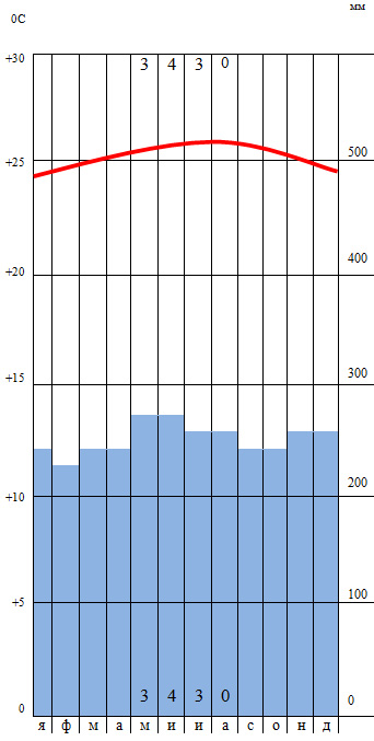 климатограмме - летом приходят муссоны и приносят много дождей.