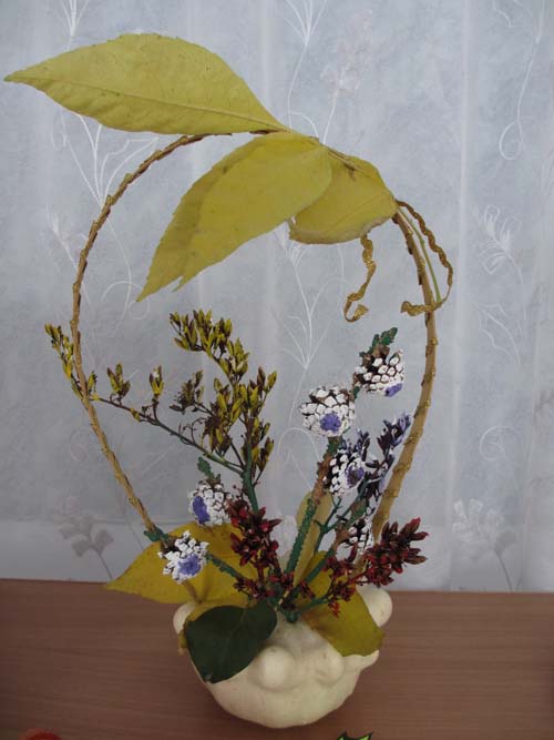 (Вед. показывает поделку "Осенний букет в вазе" "Корзина с цветами".)