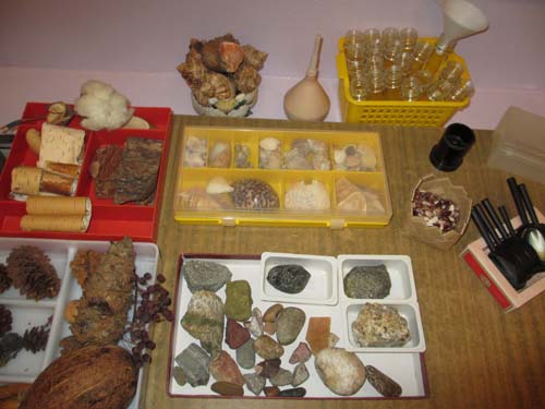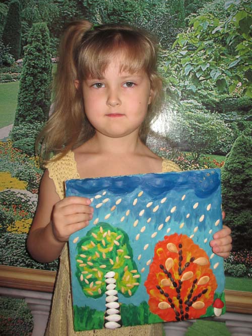 - Рассматривание энциклопедий и книг. - Рассматривание семян, плодов, коры деревьев, камней, ракушек в уголке экспериментирования. Рисунок 8. - Рисование, аппликация, лепка с использованием семян, листьев, шишек, плодов деревьев. - Составление осенних композиций. - Цветные отпечатки листьев. - Музыкально-игровое творчество (слушание, пение, музыкально-ритмические движения, музыкальные игры). - Игры с листочками: "Дорожка из листьев", "Образы из листьев". |