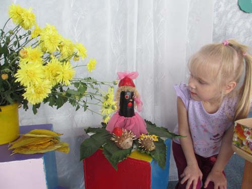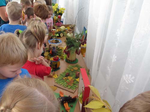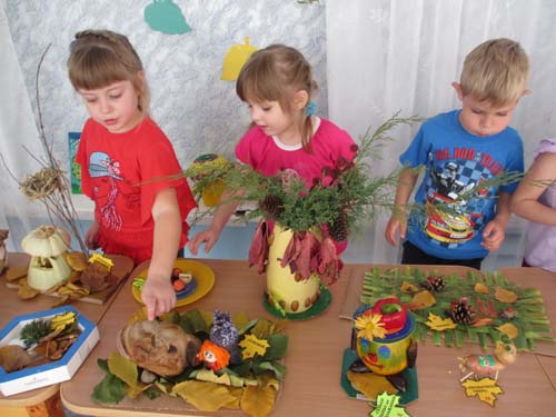 | Воспитатель - дети - родители | - Организация конкурса-выставки семейных поделок и сувениров с использованием природных материалов "Краски осени". Рисунок 9.