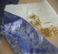 Для изготовления моего костюма я решила использовать парчу синего цвета с серебреным рисунком, синтепон и тесьму для отделки.