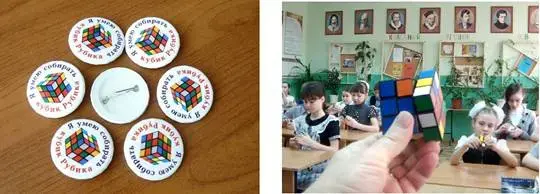 Конечно, у ребят было стремление научиться собирать кубик, но и я стимулировал их желание. Например, каждому научившемуся собирать кубик и продемонстрировавшему своё умение в незнакомом коллективе, вручал значок «Я умею собирать кубик Рубика». Алгоритмы сборки кубика стали передаваться и другим учащимся, не являющимся членами кружка, но эту «цепную реакцию я только приветствовал, и показавшим своё умение собирать кубик тоже вручался значок. Так в школе появилась традиция - вручать значок «Я умею собирать кубик Рубика» тому, кто показал своё умение собирать кубик Рубика ребятам из другого класса.