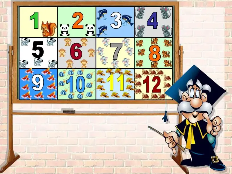Слайды 4-7 знакомят учащихся с английскими числительными от 1 до 12. Для их образования нет никаких правил. Их нужно просто запомнить. Слайды позволяют отработать числительные от 1до 12 как хором, так и индивидуально. А слайды 6-7 позволяют связать цифровое и буквенное написание числительных и отработать их правописание.