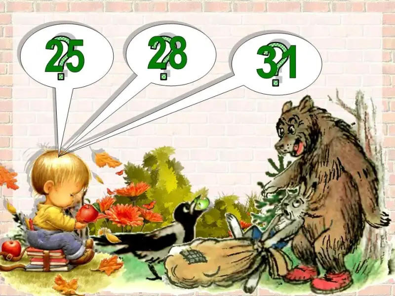 Слайды 35-37 позволяют отработать порядковые числительные и названия месяцев.