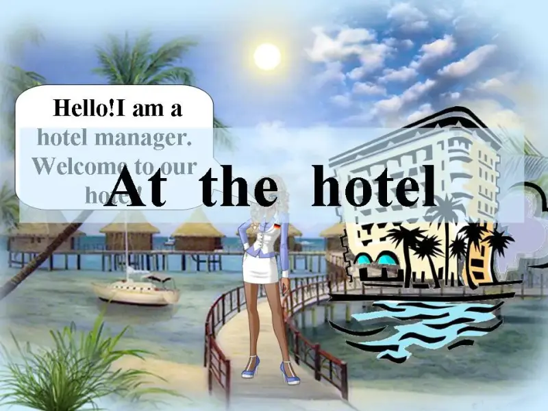Слайды 33-34 на примере разговора в отеле демонстрируют учащимся использование числительных в повседневной речи.