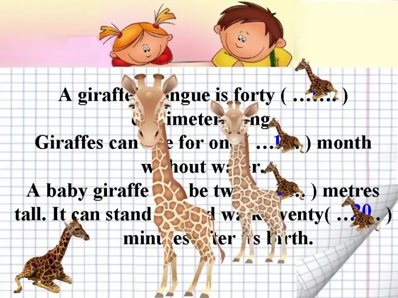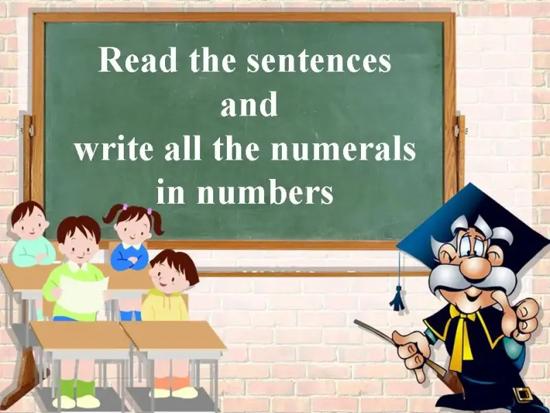 Слайды 35-39 содержат короткие познавательные тексты, в которых встречается очень много числительных. Учащиеся читают и переводят тексты и цифрами заменяют числительные, написанные словами. Данное задание можно предложить в обратном варианте: написанные цифрами числительные заменить словами.