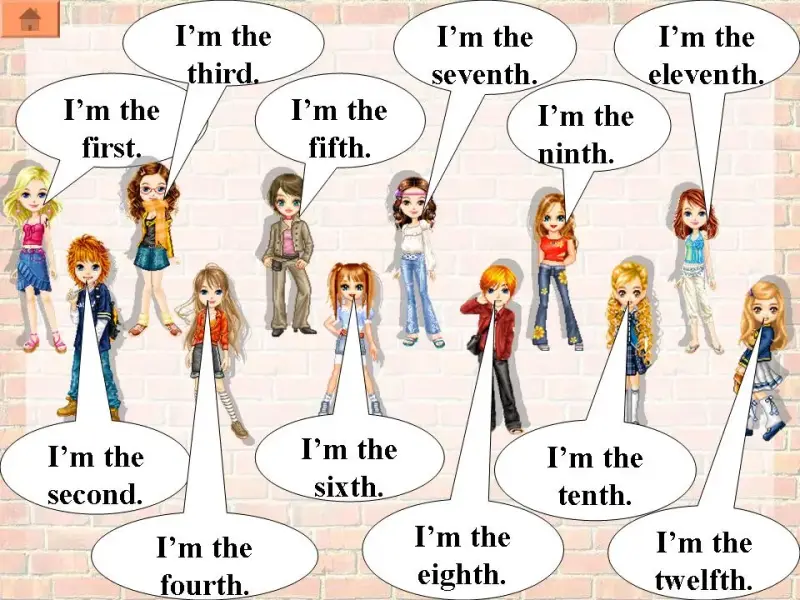 Слайд 15 можно использовать в качестве физкультминутки. Учащиеся выстраиваются в классе в произвольном порядке и каждый говорит, каким по счету он стоит, например «I'm the first», «I'm the second», «I'm the third» и т.д. Затем учитель просит учащихся перестроиться и снова сказать предложения, какими по порядку они стали, и так несколько раз.