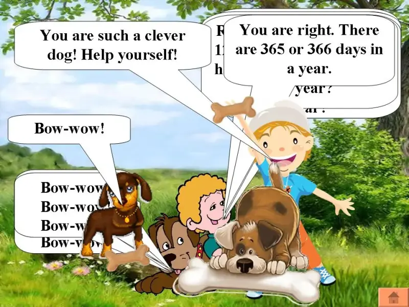 Слайды 25-29 помогут научить учащихся, как по-английски сказать, сколько минут в часе, часов в сутках, дней в неделе и т.д. Слайды 27-28 содержат полусерьезный-полушуточный диалог, в котором мальчик обучает собаку. На слайде 29 аналогичный диалог составляют уже учащиеся, работая в парах.