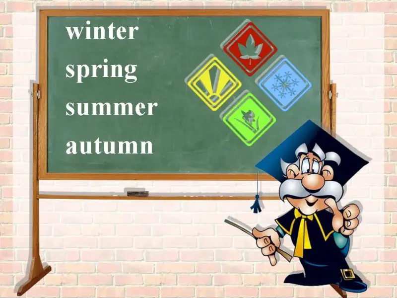 Слайды 33-34 посвящены работе с временами года. Предлагаемые задания позволяют закрепить названия времен года, а также порядковые числительные.