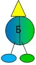 Слова Наф - Наф и Ниф- Ниф дают яркое представление о звуках [н] и [н'], обозначаемых одной буквой эН. Значит, кружок мы разукрасим сразу двумя цветами: половину синим цветом, а вторую половину зелёным цветом.