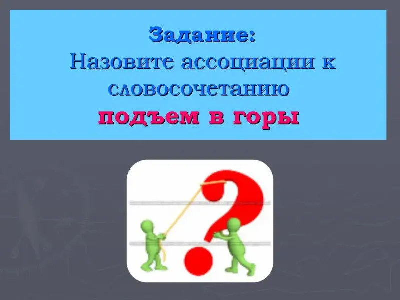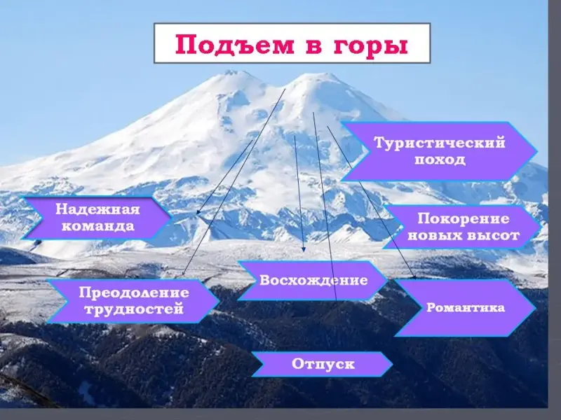 Задание: Назовите ассоциации к словосочетанию подъем в горы.