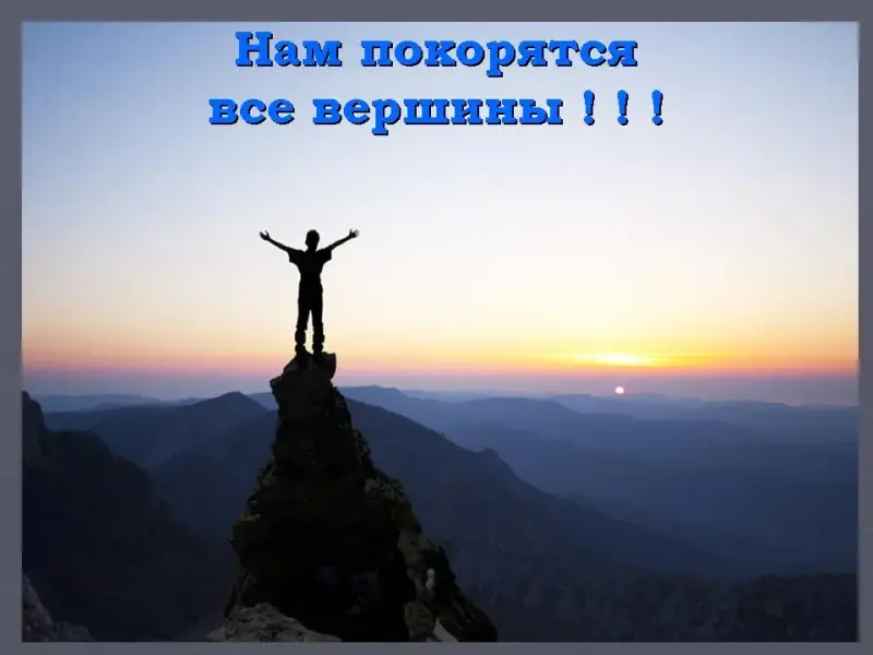 Но были и такие, которые достигли вершины. И взору их открылся великолепный вид. И они ощущали глубокую причастность к той небольшой группе людей, которые так же, как и они, достигли вершины, были упорны в своих стремлениях, не предали свою мечту и верили в себя. И с этого мгновения у них началась новая удивительная жизнь, о которой иные могут только мечтать.