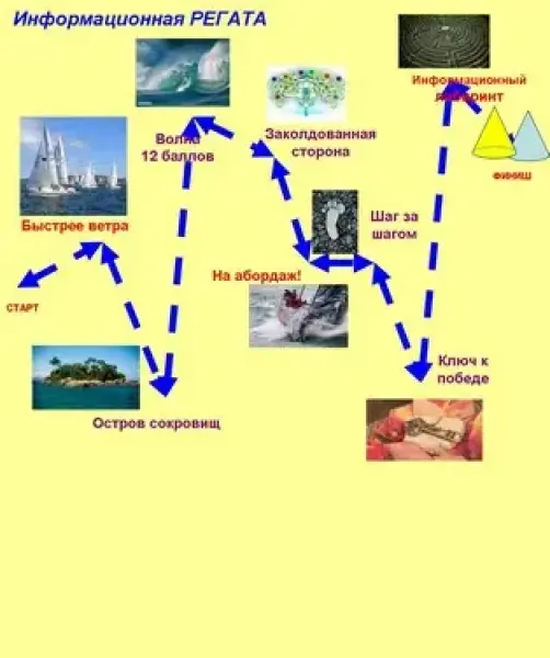 На экране или интерактивной доске: эмблема соревнования (Парусник) и маршрут игры с корабликами на магнитах (Приложение 1).