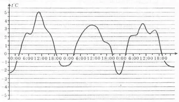 На графике <Рисунок 2> показано изменение температуры воздуха на протяжении трех суток, начиная с 0 часов 2 марта. На оси абсцисс отмечается время суток в часах, на оси ординат - значение температуры в градусах. Найдите по графику наибольшую температуру воздуха 3 марта.