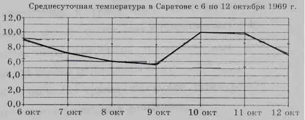 На рисунке <Рисунок 3> изображен график среднесуточной температуры в г.Саратове в период с 6 по 12 октября 1969 г. На оси абсцисс откладываются числа, на оси ординат - температура в градусах Цельсия.