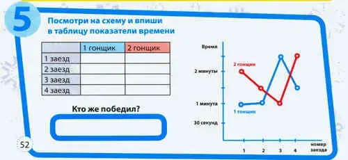 6) Прочитай справку, посмотри на схему, впиши в таблицу показатели времени. Кто же победил? Справка:Как соревнуются бобслеисты?