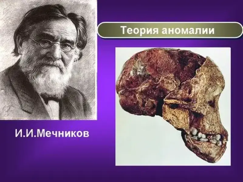 Теория аномалии была выдвинута еще в 1903 году русским биологом И.И.Мечниковым в книге "Этюды о природе человека". Мечников пишет: "Из суммы всех известных данных мы имеем право вывести, что человек представляет остановку развития человекообразной обезьяны более ранней эпохи. Он является чем-то вроде обезьяньего "урода" не с эстетической, а чисто с зоологической точки зрения. Человек может быть рассмотрен как "необыкновенное" дитя человекообразных обезьян, дитя, родившееся с гораздо более развитыми мозгом и умом, чем у его родителей… Аномально большой мозг, заключенный в объемистом черепе, позволил быстро развиться умственным способностям, гораздо более мощным, чем у родителей… Мы знаем, что иногда рождаются необыкновенные дети, отличающиеся от родителей какими-нибудь новыми, очень развитыми способностями… Приходится допустить, что некоторые виды организмов не подчиняются медленному развитию, а появляются внезапно, и что в этом случае природа делает значительный скачок. Человек, вероятно, обязан своим происхождением подобному явлению".