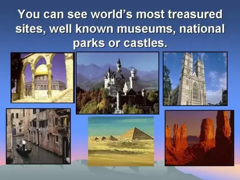 | You can see world's most treasured sites, well known museums, national parks or castles. |
