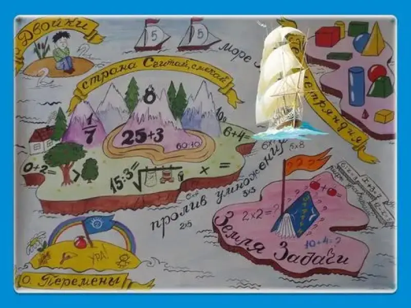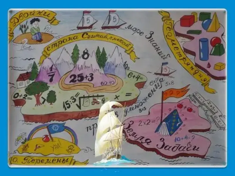 Мы побываем на острове Считай, смекай, на земле Задачи, в Геометряндии, а в проливе умножения вы сделаете для себя открытие.
