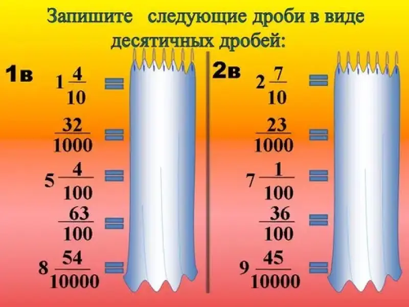 - научить записывать и читать десятичные дроби;