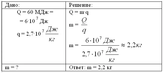 Задача: Какая масса каменного угля была сожжена в печи, если при этом выделилось 60 МДж тепла?