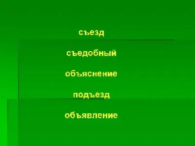 изян, обявление, обяснение, сезд, подезд, подехали