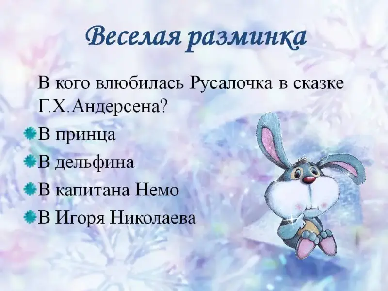 17. Что произойдет с Русалочкой, если принц не полюбит ее? (Она превратится в морскую пену)