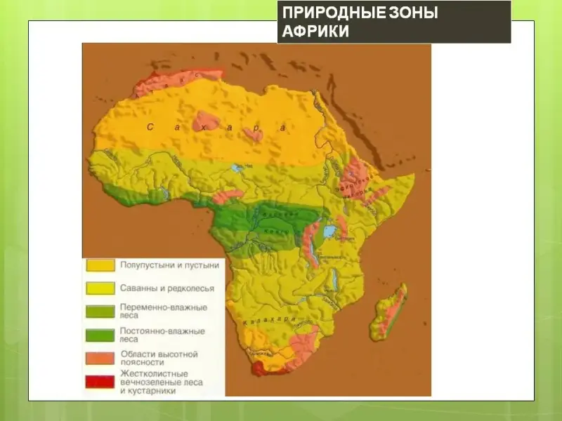 5-6 слайды. Задание 1. Используя атлас с. 25, перечислите природные зоны Африки. Каковы особенности их размещения на материке? Из курса 6 класса вспомните, и