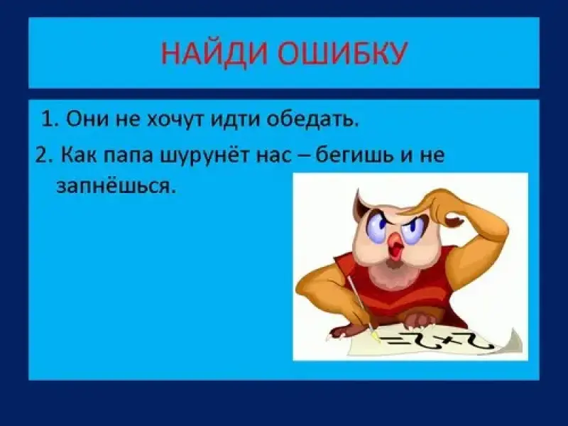 5. - А сейчас вы выполните задание "Найди ошибку". Слайд№5 Внимательно прочитайте предложения, подумайте правильно ли употреблены глаголы.