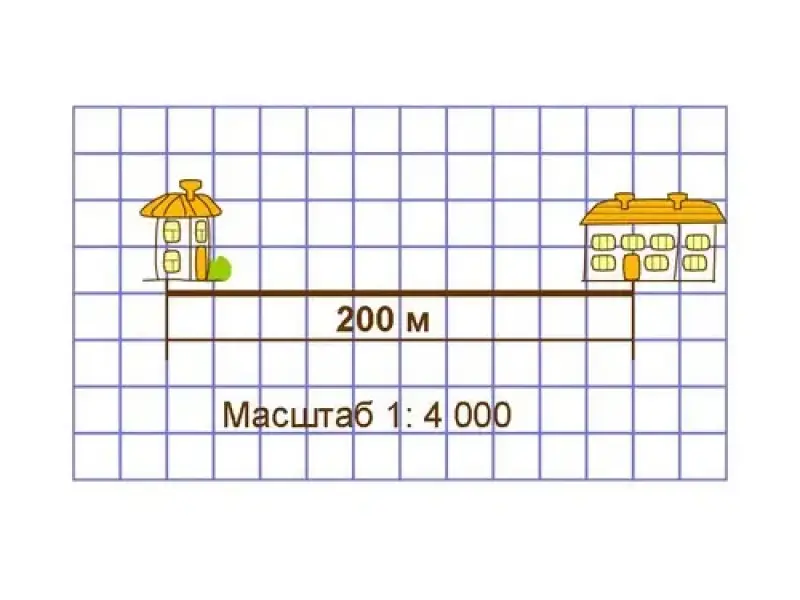Расстояние от школы до дома, в которой учится Коля, равно 200 м. Изобразите это расстояние отрезком в масштабе 1:4000.