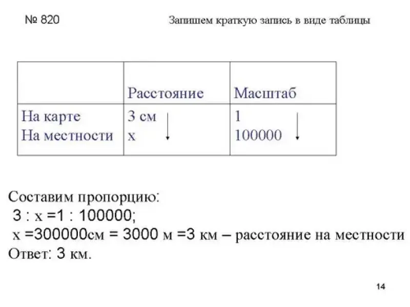 Задача. Длина отрезка на местности 300 км. Найдите длину соответствующего отрезка на карте, если масштаб карты 1:1000000.