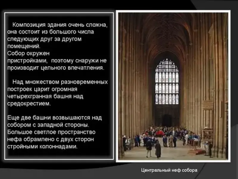 Трудно найти подходящие слова, чтобы описать впечатления от готического собора. Они высоки и тянутся к небу бесконечными стрелами башен и башенок, вимпергов, фиалов, заостренных арок. Но больше поражает не столько высота, сколько богатство аспектов, открывающиеся, когда обходишь кругом собора.