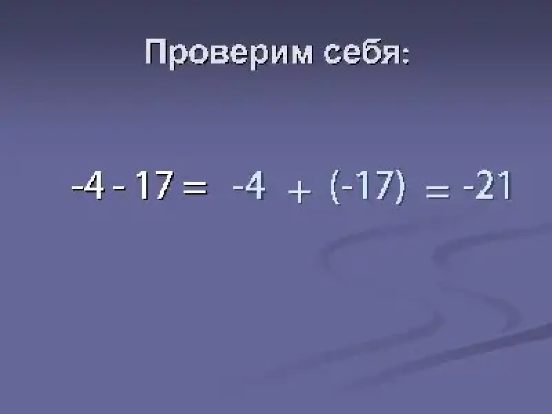 Выполните действие: -4 -17. (Вычитание выполняется совместно.)"