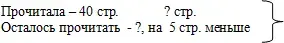 Все страницы - это страницы, которые прочитала Оля, и страницы, которые ей осталось прочитать. Оля прочитала 40 страниц. А сколько страниц ей осталось прочитать, нам неизвестно, значит, нужно найти.