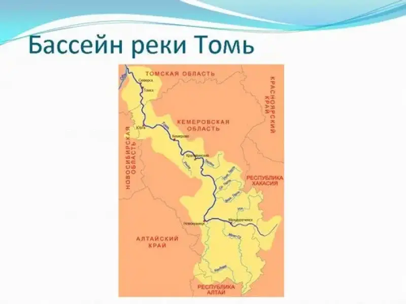 Река Томь. Что вы о ней знаете? По карте находят исток и устье реки, устанавливая, что исток в горах Кузнецкого Алатау, а устье на Западно-Сибирской равнине, впадает в реку Обь. (Слайд 6).