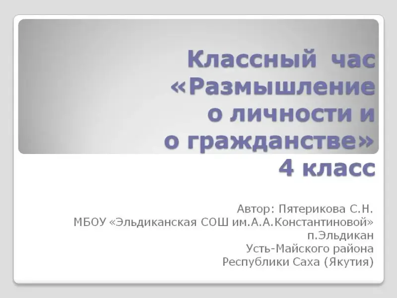 Классный час на тему "Размышление о личности и гражданстве". 4-й класс