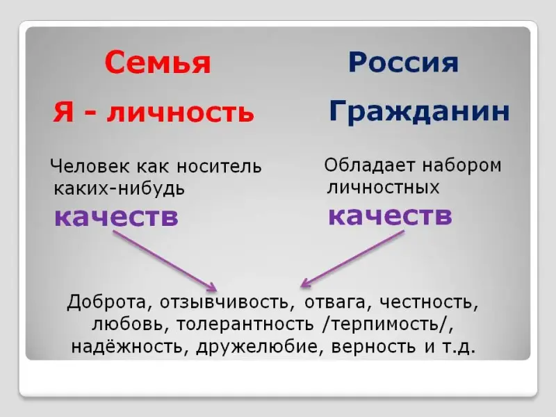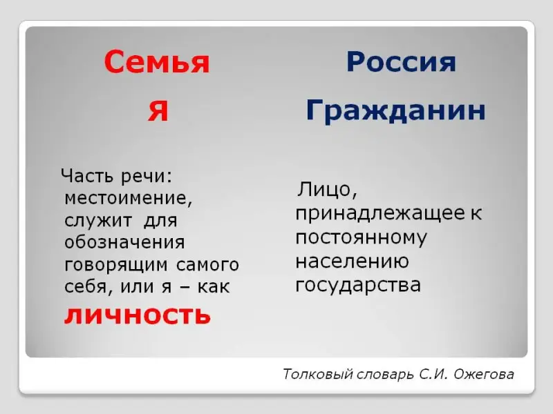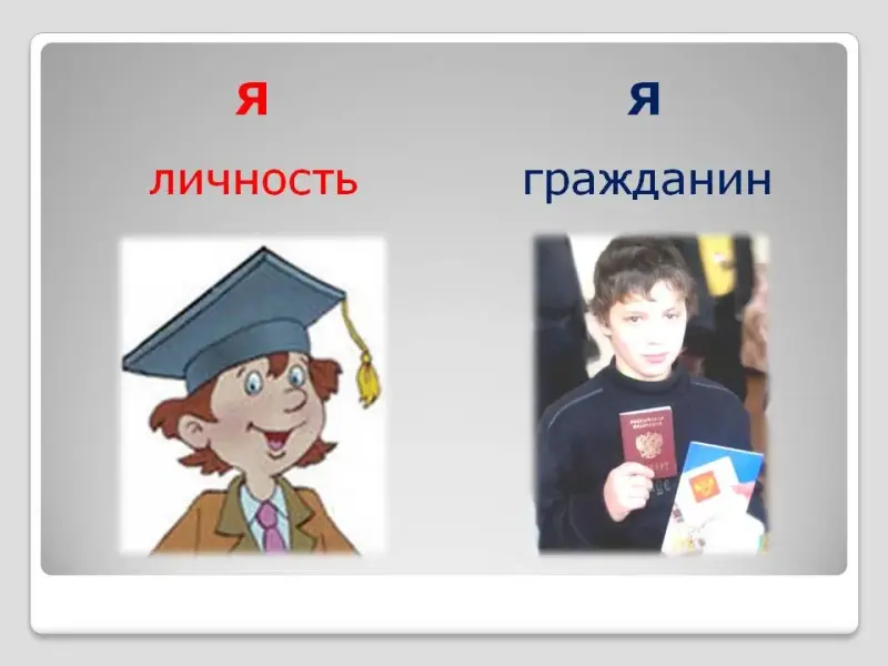 - Продолжаем проводить параллель. Личности - мы в семье, но для государства каждую личность называют другим словом. Каким? (Гражданин)