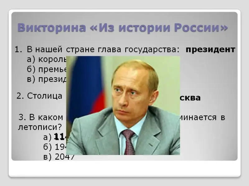 - Давайте в виде блиц-викторины вспомним важные исторические сведения «Из истории России».