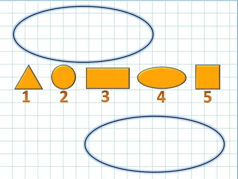 - Разделите все геометрические фигуры на две группы. Фигуры с какими номерами входят в первую группу? Во вторую группу?