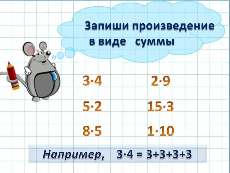 - Иметь представления о действии умножения как сложении одинаковых слагаемых.
