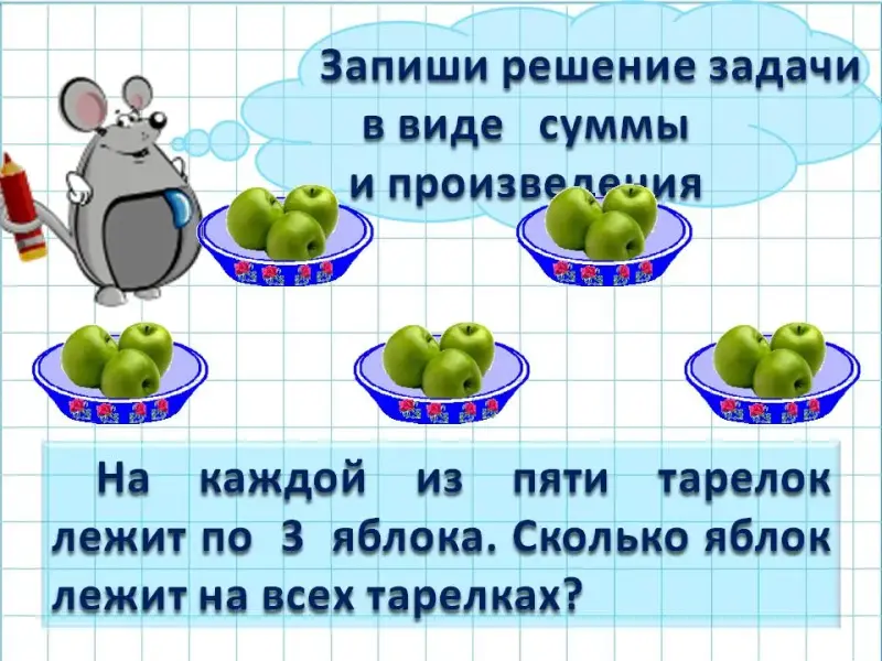 Урок математики по теме "Сумма и произведение. Знак умножения". 2-й класс