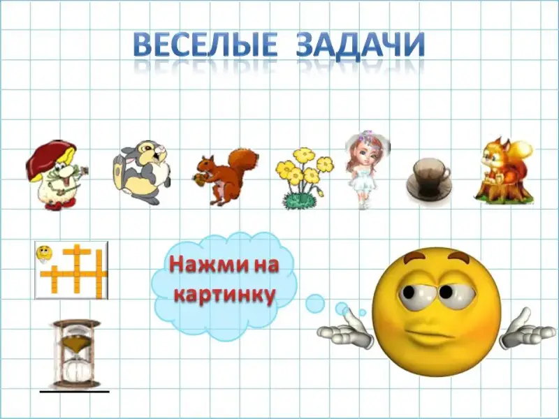 Учитель. Смайлик и Мышка довольны вашей работой и у них есть для вас веселые задачи. Сейчас мы решим некоторые из них.