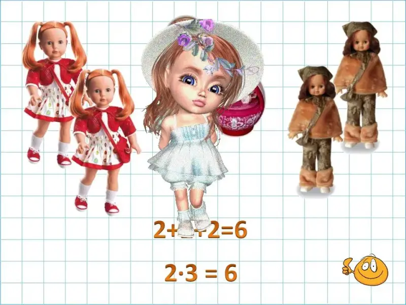 - Сколько кукол у Маши? Как нашли? Как сумму заменить произведением?